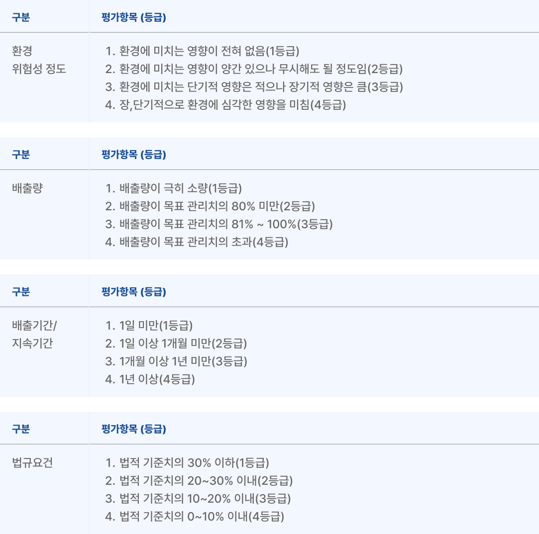 환경 규제 강화 | 지역 환경청 지도 점검 강화, 법적 기준 강화 예상 | 신규 설비 설치 의무화 가능성 → 추가 투자 필요 |