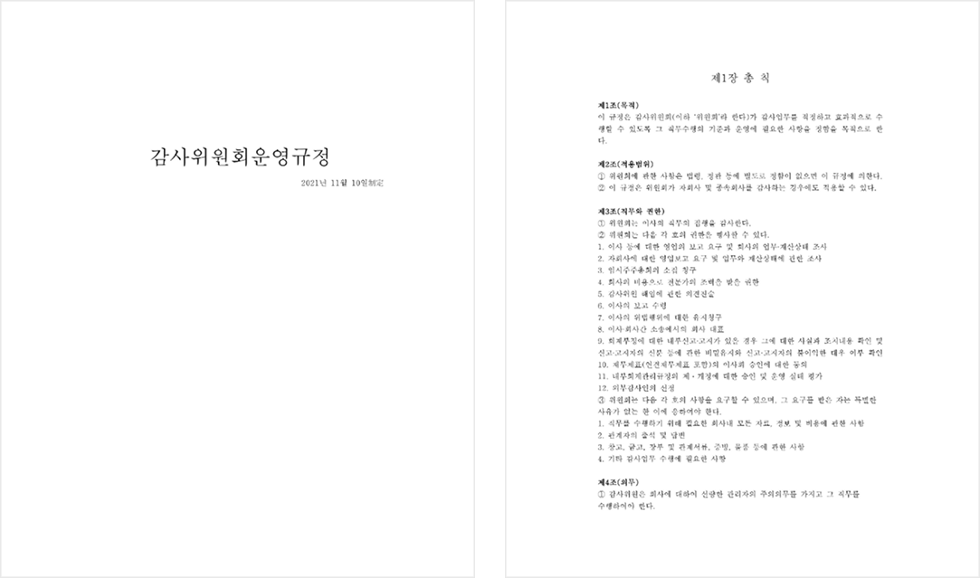 대주전자재료는 감사위원회를 전원 사외이사로 구성하여 경영진과의 독립성을 확보하고 있습니다. 효과적인 감사 업무 수행을 위해 감사위원회 규정 제3조에 따라 회사의 비용으로 외부 전문가 자문을 제공하고 있으며, 감사위원회가 원활히 기능할 수 있도록 지원 부서를 지정하고 있습니다. 내부회계팀은 감사위원회의 요구사항 대응, 재무보고 관련 주요 자료 발송, 회의 진행 등 실무 업무를 지원하며, 감사위원회가 내부통제시스템 설계 및 운영 전반에 대한 평가를 수행할 수 있도록 돕고 있습니다.