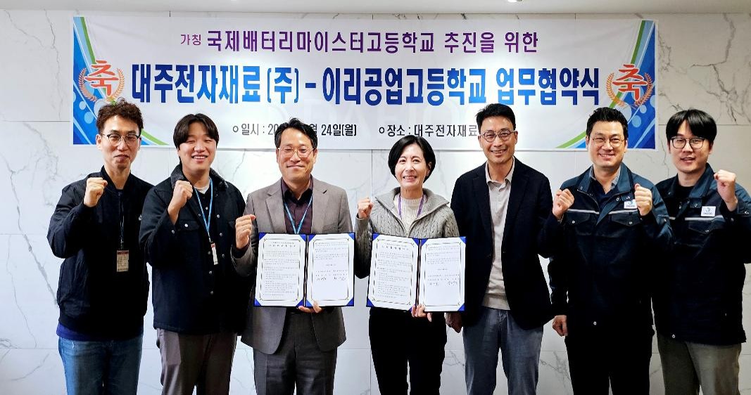 대주전자재료는 이리공업고등학교와 산학 협약을 체결하고, 이차전지 산업수요에 맞춘 교육과정 개발 및 졸업생 채용에 협력하고 있습니다.