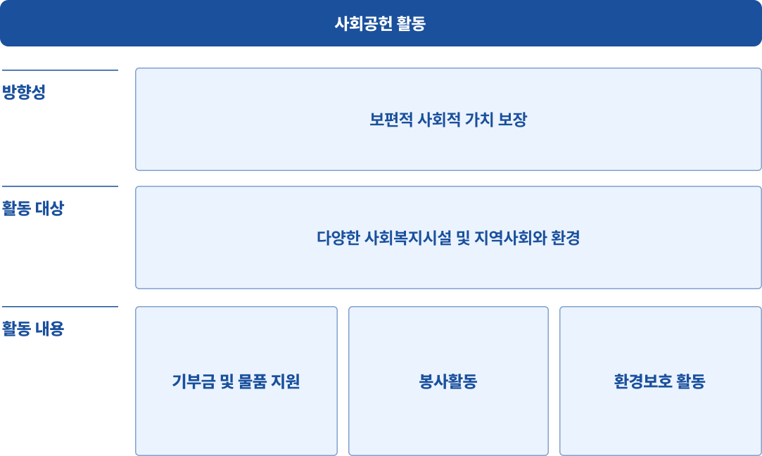 대주전자재료는 기업의 핵심 가치를 실현하고 ‘보편적 사회적 가치 보장’을 목표로, 회사의 역량과 연계된 다양한 사회공헌 활동을 통해 사회적 책임을 다하고 있습니다. 2043년에는 사회복지시설에 기부와 봉사활동을 실시했습니다. 앞으로도 대주전자재료는 사내 봉사단 활동과 기부를 활성화하여, 지속적으로 사회공헌을 강화해 나갈 계획입니다.