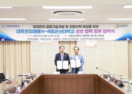 대주전자재료는 국립군산대학교와 이차전지 기술 개발, 전문인력 양성, 연구성과 활용 등을 위한 산학협력 협약을 체결하였습니다.