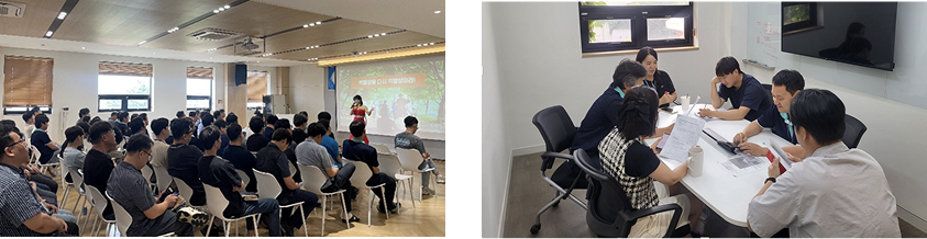 매월 신입사원을 대상으로 조직의 비전과 가치, 기업 문화, 기본적인 직무에 대한 교육을 실시합니다. 신규 채용 직원이 업무에 빠르게 적응하고 회사에 원활히 통합될 수 있도록 지원하고 있으며 효과적인 교육 커리큘럼을 통해 신입사원의 직무 만족도와 생산성을 높이기 위해 노력하고 있습니다.