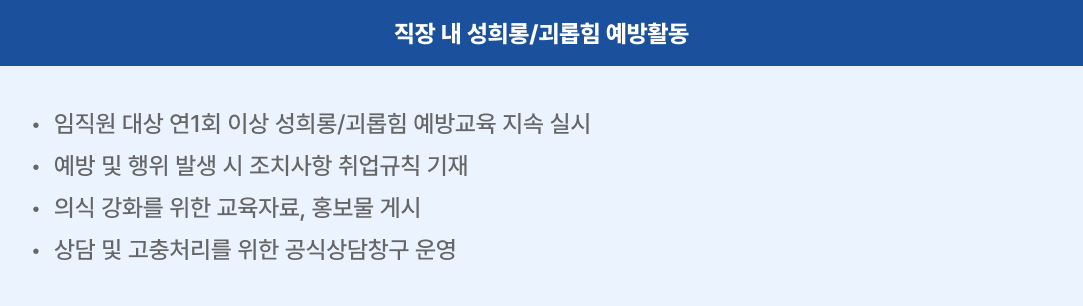 2027 | 고충처리 시스템 외부 감사 도입, 여성/장애인 채용률 제고 |