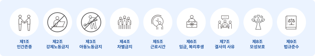 아동 노동 및 강제노동이 존재하지 않습니다.